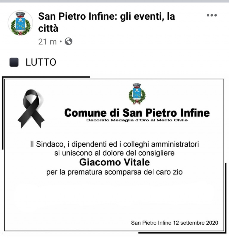 Lo apprendiamo dalla pagina Facebook San Pietro Infine: gli eventi, la città.