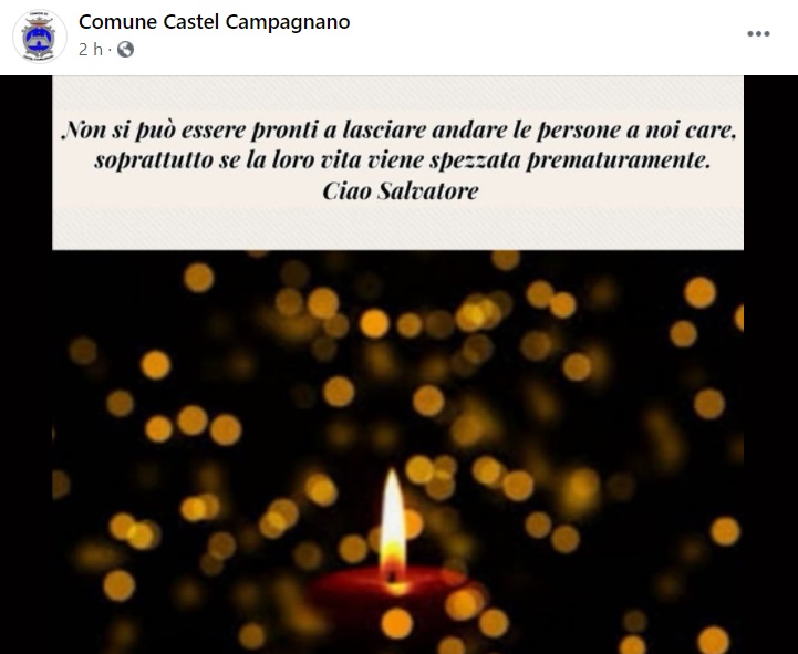 Questo quanto apprendiamo dalla pagina facebook del Comune di Castel Campagnano: