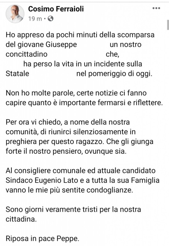 Le più sentite condoglianze ai familiari anche da parte della nostra redazione.