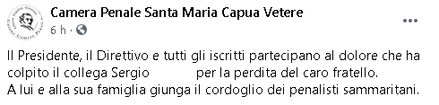 "Il Presidente, il Direttivo e tutti gli iscritti partecipano al dolore che ha colpito il collega Sergio ...per la perdita del caro fratello. A lui e alla sua famiglia giunga il cordoglio dei penalisti sammaritani."