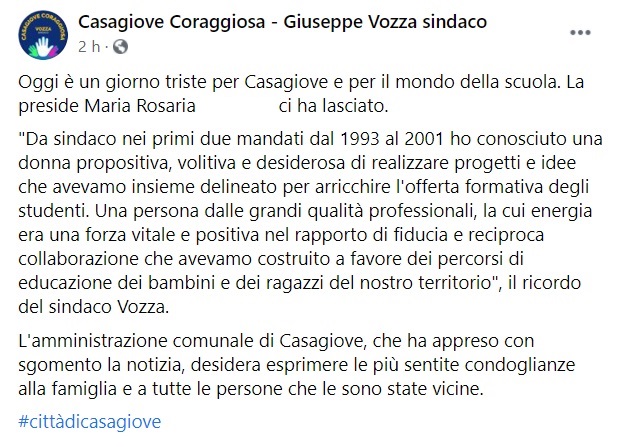 Questo quanto pubblicato sulla pagina FB del Sindaco di Casagiove