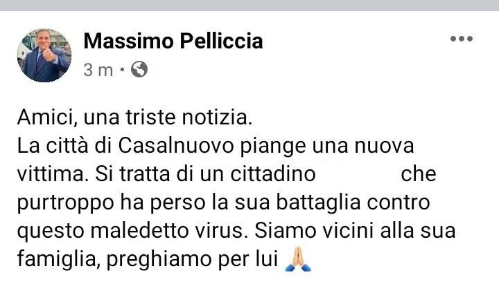 Questo quanto pubblicato sulla pagina fb del Sindaco di Casalnuovo