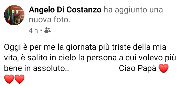 Questo quanto apprendiamo dal profilo facebook dell'ex Presidente della Provincia di Caserta, Di Costanzo: