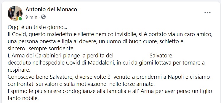 Questo quanto pubblicato sulla pagina fb dell'On. Del Monaco