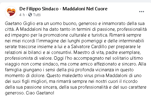 Lo apprendiamo dalla pagina Facebook del Sindaco di Maddaloni 'De Filippo Sindaco-Maddaloni nel Cuore'.