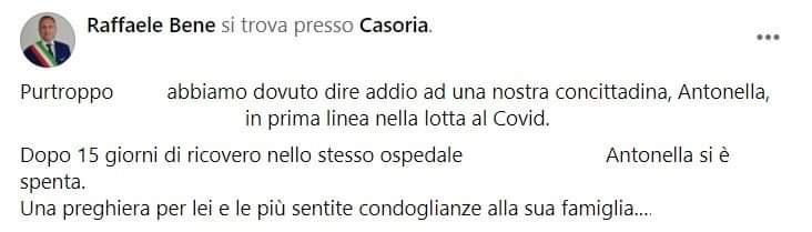 Questo quanto pubblicato sulla pagina Facebook del sindaco di Casoria