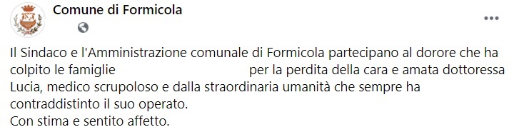 Questo parte di quanto apprendiamo dalla pagina facebook del Comune di Formicola: