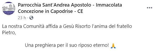 "La nostra Comunità affida a Gesù Risorto l'anima del fratello ...Pietro, ... Una preghiera per il suo riposo eterno!"
