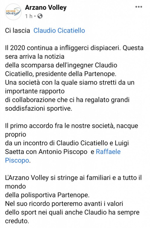 Lo apprendiamo dalla pagina Facebook dell'Arzano Volley.