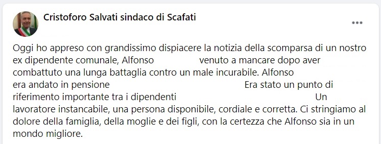 Questo quanto pubblicato sulla pagina facebook del Sindaco di Scafati