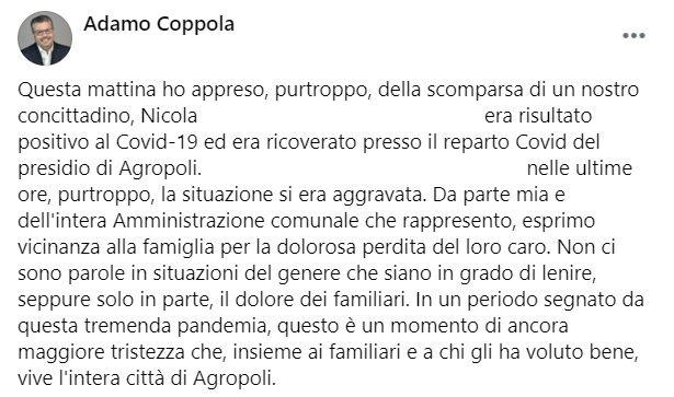 Questo quanto pubblicato sulla pagina facebook del Sindaco di Agropoli