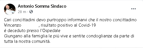 Lo apprendiamo dalla pagina Facebook di Antonio Somma, Sindaco di Mercato San Severino.