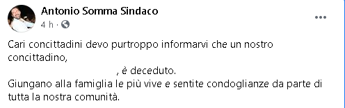 Lo apprendiamo dalla pagina Facebook di Antonio Somma, Sindaco di Mercato San Severino.