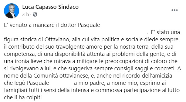 Questa parte quanto pubblicato sulla pagina facebook del Sindaco Capasso di Ottaviano: