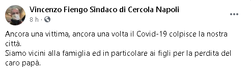 Lo apprendiamo dalla pagina Facebook di Vincenzo Fiengo, Sindaco di Cercola di Napoli: