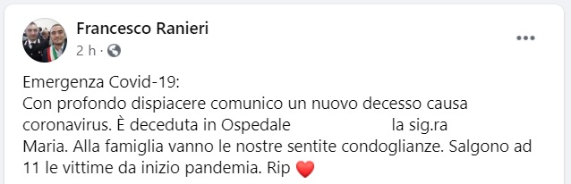 Questo quanto pubblicato sulla pagina fb del Sindaco di Terzigno