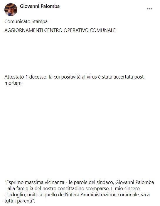 Questo parte di quanto pubblicato sul profilo facebook del Sindaco Palomba di Torre del Greco:
