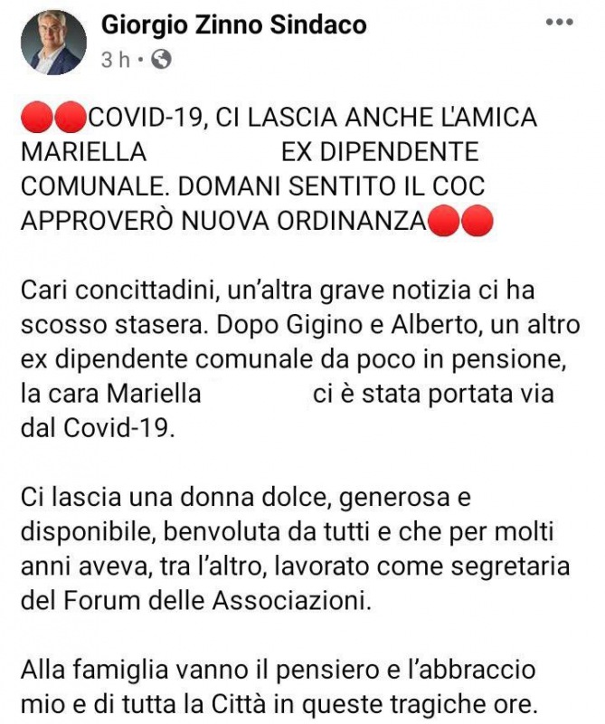 Questo quanto pubblicato sulla pagina facebook del Sindaco di S.Giorgio a Cremano