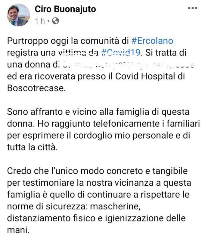Questo quanto pubblicato sulla pagina fecbook del Sindaco di Ercolano