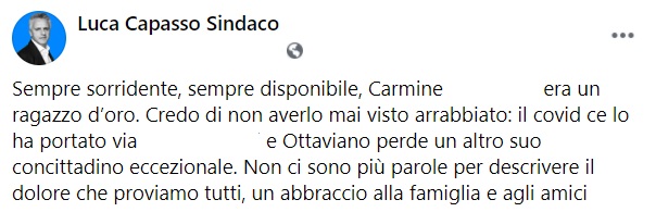 Questo parte di quanto apprendiamo dalla pagina facebook del Sindaco di Ottaviano, Capasso:
