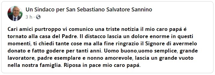 Questo quanto apprendiamo dalla pagina facebook del Sindaco di San Sebastiano al Vesuvio, Sannino: