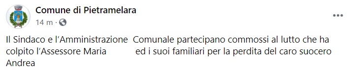 "Il Sindaco e l’Amministrazione Comunale partecipano commossi al lutto che ha colpito l’Assessore Maria ... ed i suoi familiari per la perdita del caro suocero Andrea ..."