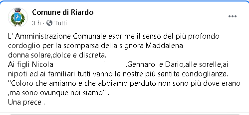 Lo apprendiamo dalla pagina Facebook del Comune di Riardo.