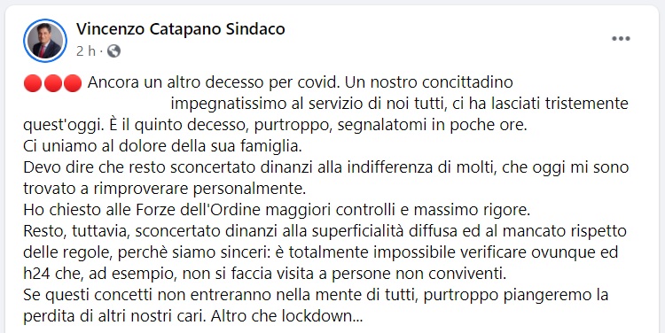 Questo quanto pubblicato sulla pagina fb del Sindaco