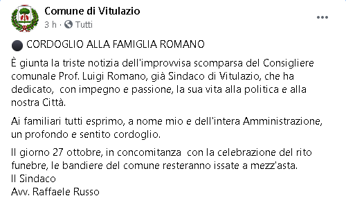 Lo apprendiamo dalla pagina Facebook del Comune di Vitulazio.
