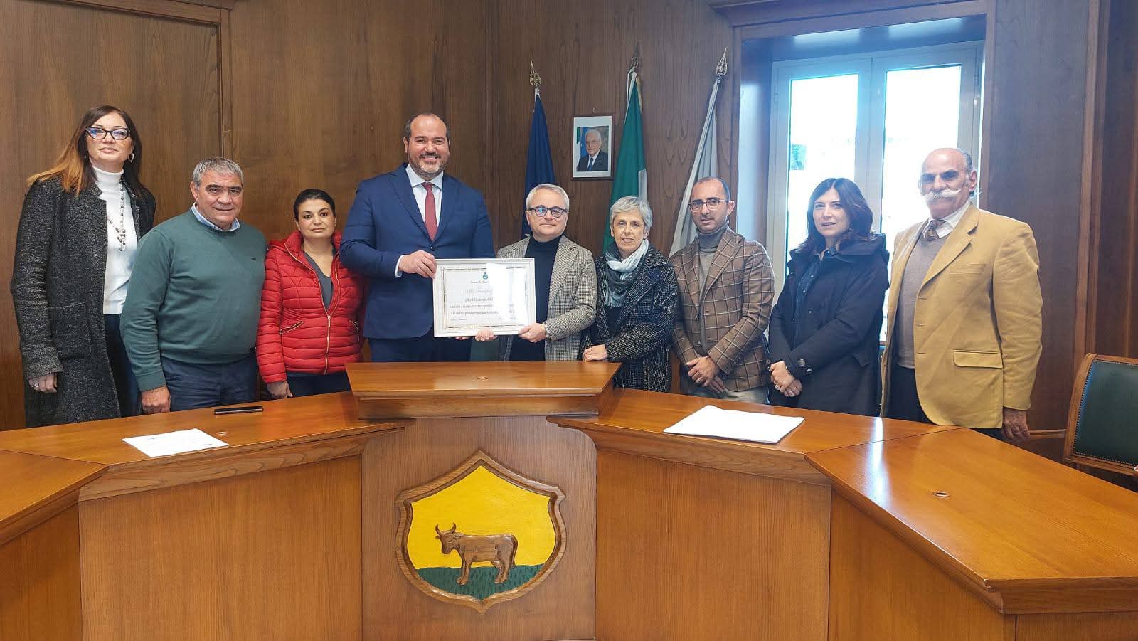 "Consegnati questa mattina (ieri ndr) alla Casa Comunale i volumi appartenuti allo storico Andrea Massaro. Il Sindaco e l’Amministrazione ringraziano ufficialmente l’Avv. Innocenzo Massaro e gli Eredi, consegnando lo Stemma di Macerata Campania