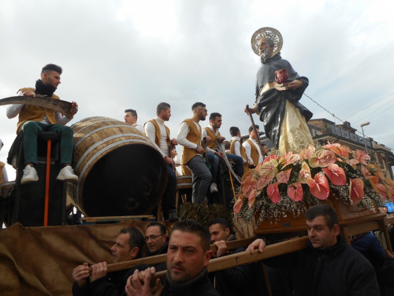 Questo il comunicato stampa diffuso dall'Associazione Sant'Antuono & e le Battuglie di Pastellessa: "Il mese di gennaio si apre a Macerata Campania in provincia di Caserta con la storica Festa di Sant’Antuono (Sant’Antonio Abate). È questo uno degli eventi più importanti nel panorama delle feste popolari/religiose della Regione Campania. Qui il Santo - si legge nel comunicato - è festeggiato con il suono di botti, tini e falci, che percosse dai tipici bottari danno vita a poliritmie che ricalcano le origini contadine della comunità: è questa la “Musica di Sant’Antuono”, una musica primigenia – forse la più antica in Europa arrivata intatta ai giorni nostri – usata dai maceratesi per allontanare il male e sconfiggere il diavolo; nata a Macerata Campania - prosegue il comunicato - alle porte della Reggia di Caserta quando era un rione di Capua antica e che è diventato il tassello più rappresentativo della festa dedicata al Santo eremita, la cui origine secondo la tradizione orale risale al lontano XIII secolo. «La pandemia COVID-19 ci sta mettendo a dura prova, ha stravolto le nostre vite, ma non può spegnere l’ardente fiamma della tradizione e il nostro amore per Sant’Antuono», è questo il messaggio dei Carristi che riecheggia sul manifesto dell’evento. L’emergenza - si legge ancora - in cui versa il mondo intero per la pandemia COVID-19 ha portato, infatti, a ripensare il programma dei festeggiamenti civili in onore di Sant’Antuono con l’obiettivo primario di garantire la salute pubblica dell’intera popolazione, non proponendo talune attività tradizionali che per la loro natura risulterebbero irrealizzabili per le restrizioni imposte dalle leggi applicabili in materia. Ecco quindi - prosegue il comunicato - spazio a tante attività in remoto al posto della classica sfilata dei Carri di Sant’Antuono, che potranno essere seguite sulla pagina Facebook @santantuono, partendo dall’incontro con i protagonisti della festa che racconteranno le proprie impressioni sull’edizione 2022 vissuta nel contesto della pandemia, per poi passare ai laboratori dedicati sia al piatto tipico della past’ e ‘llessa che ai giochi tradizionali con l’obiettivo primario - si legge ancora - di sensibilizzare le nuove generazioni nella salvaguardia del patrimonio culturale immateriale della comunità in linea con la Convenzione UNESCO del 2003. L’edizione 2022, promossa dal Comune di Macerata Campania e dall’Associazione Sant’Antuono & le Battuglie di Pastellessa, accreditata - recita ancora il comunicato - come NGO presso l’UNESCO, partirà sabato 15 gennaio per concludersi lunedì 17 gennaio 2022, nel giorno dedicato a Sant’Antonio Abate. I giorni che precederanno l’evento saranno dedicati all’allestimento del centro cittadino con le palme, simbolo indissolubile dei Carri con l’amato Sant’Antuono. Un appuntamento - prosegue il comunicato - all’insegna della tradizione, che vede il supporto tecnico-scientifico dell’Istituto Centrale per il Patrimonio Immateriale, il patrocinio della Regione Campania e della presidenza del Consiglio regionale della Campania e che aderisce alla “Rete Italiana per la Salvaguardia e Valorizzazione delle Feste di Sant’Antonio Abate”, che vede proprio Macerata Campania come capofila, oltre che all’iniziativa “Giornata Nazionale del Dialetto e delle lingue locali” promossa da Unione Nazionale Pro Loco Italia. Il 17 gennaio - si legge ancora - si aprirà con i fuochi pirotecnici di saluto al Santo, che verranno esplosi anche a mezzogiorno al posto dei consueti fuochi pirotecnici figurati, le cui figure apotropaiche legate alla vita del Santo (‘a signora ‘e fuoco, ‘o puorco, ‘o ciuccio, ‘a scala) insieme ai Carri di Sant’Antuono e al Palo di sapone (gioco tradizionale) verranno esposte nelle strade e nelle piazze della città. Concluderà l’evento - prosegue il comunicato - la consegna del “Premio Historia Loci”, istituito dall’Associazione Sant’Antuono & le Battuglie di Pastellessa nel 2012 al fine di riconoscere tutte quelle persone ed enti che hanno contribuito in modo fattivo alla salvaguardia, alla trasmissione e alla valorizzazione della Festa di Sant’Antuono".