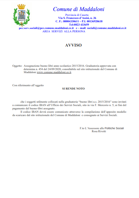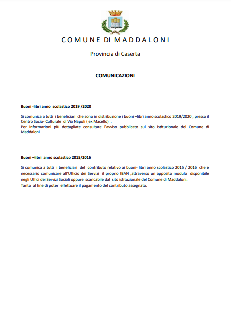 Lo apprendiamo dal sito del Comune di Maddaloni.