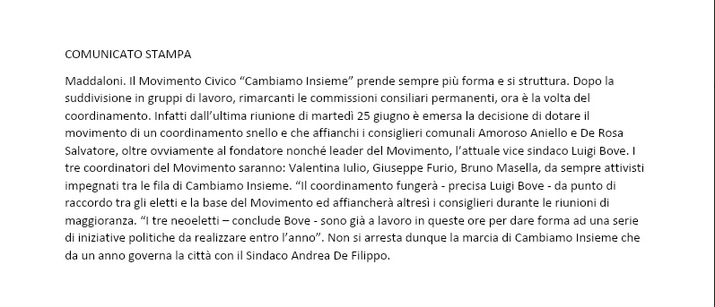 Questo il comunicato inviatoci dall'Ufficio Stampa di 'Cambiamo Insieme Maddaloni'.