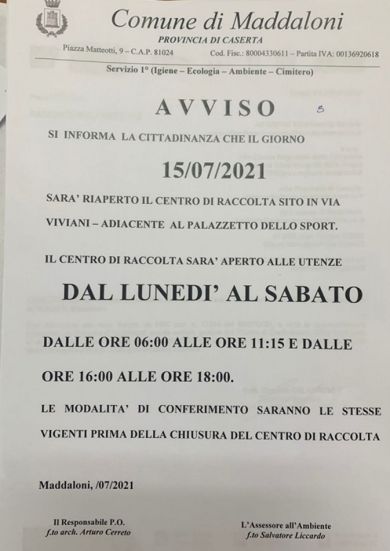 Questo l'Avviso del Comune di Maddaloni: