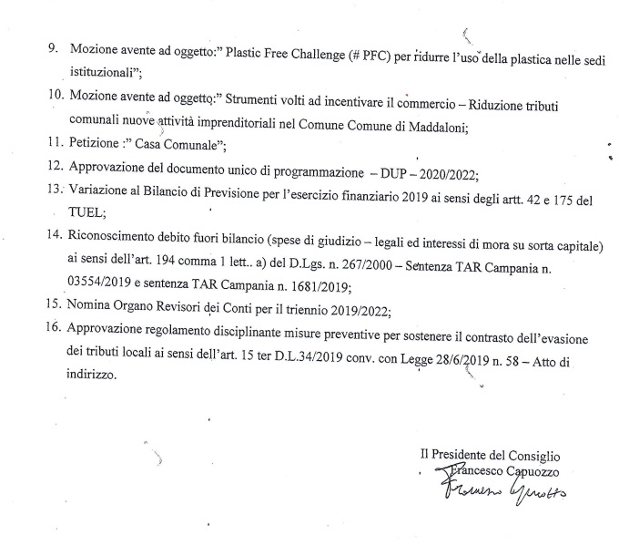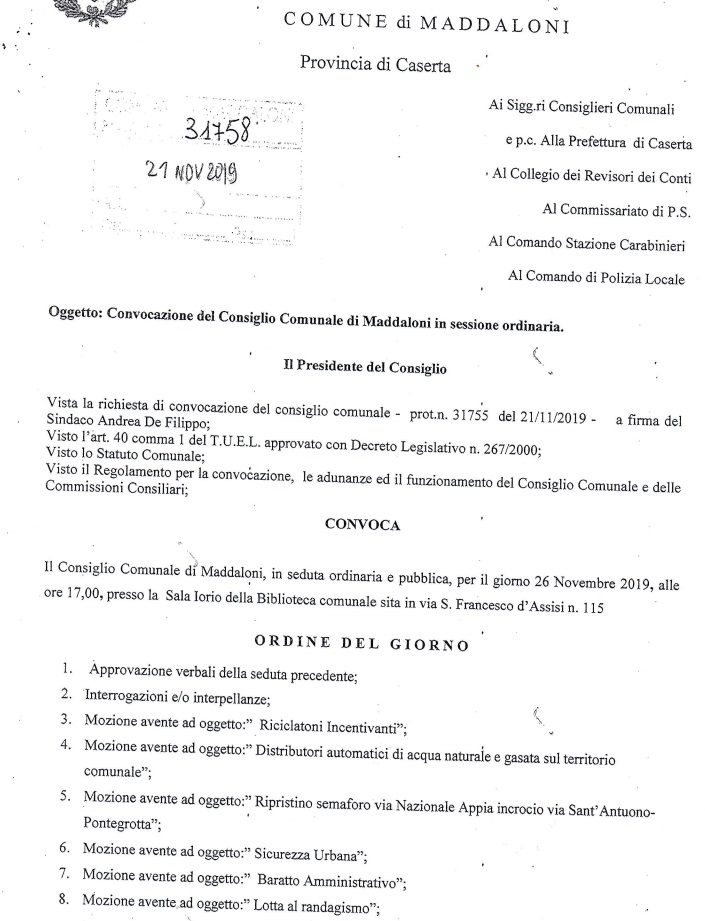 E' convocato per domani il Consiglio Comunale di Maddaloni, con il seguente ordine del giorno. Ricordiamo che l'assise sarà visibile in diretta dalle ore 17:00 sulla nostra pagina Facebook Gold WebTv