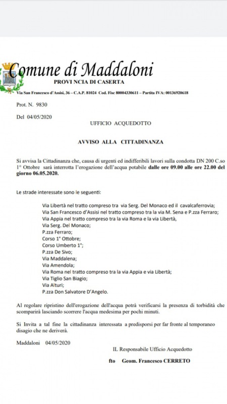 (Ruota il telefono per leggere l'avviso del Comune di Maddaloni)