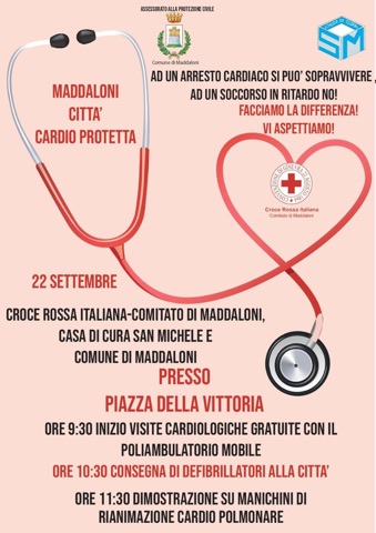 "Domenica 22 Settembre dalle ore 09.00 in Piazza della Vittoria in Maddaloni si terrà la cerimonia ufficiale di consegna dei defibrillatori da parte del Comune e dell’ Amministrazione Comunale guidata dal Sindaco Andrea De Filippo. Parliamo del progetto “Maddaloni Cardioprotetta” promosso è seguito dall assessore alla Protezione Civile Luigi Bove. I defibrillatori sono stati donati dalla Casa di Cura San Michele al Comune di Maddaloni che ha deciso, in questa prima fase del progetto, di assegnare e donare un defibrillatore al Commissariato di Polizia di Stato, all’Arma dei Carabinieri, alla Protezione Civile e alla Polizia Municipale. -Si legge nella nota- Ciò con la piena collaborazione della sezione di Maddaloni della Croce Rossa Italiana e il suo presidente dott. Marco De Simone. Il Sindaco Andrea De Filippo e il suo Vice Luigi Bove e l’intera Amministrazione consegneranno ufficialmente i defibrillatori di cui uno sarà collocato anche nella sede comunale di via San Francesco d’ Assisi . Nella stessa giornata di domenica saranno effettuate anche delle visite gratuite cardiologiche grazie all’intesa tra personale medico della Casa di Cura San Michele e la Croce Rossa Italiana, seguirà poi la cerimonia di consegna e poi alle 11.30 ci sarà una dimostrazione di rianimazione su manichini. -Si legge nella nota- Saranno presenti anche il dottore Mannella coordinatore del 118 e il dott. Claudio Briganti della medicina dello sport. Naturalmente preziosa è determinante è la sensibilità mostrata dai vertici della Casa di Cura San Michele e dalla dottoressa Lidia Barletta in modo particolare."