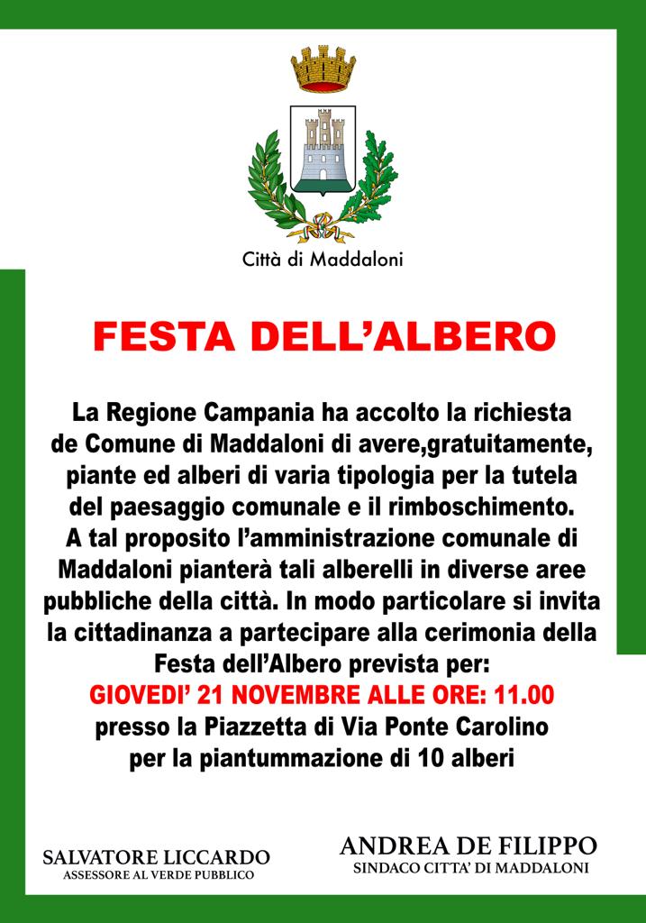 Questa mattina a Maddaloni, a partire dalle ore 11:00, presso la piazzetta di via Ponte Carolino, si è celebrata la 'Festa dell'albero', con la piantumazione di ben 10 alberi. Presenti, tra gli altri, all'evento, il Sindaco di Maddaloni, Andrea De Filippo e l'Assessore al Verde Pubblico, Salvatore Liccardo. Questo è solo l'incipit, di una piantumazione di piante ed alberi, ben più estesa, che avverrà in diverse aree pubbliche della città. Infatti, la Regione Campania, ha ccolto la richiesta del Comune di Maddaloni, di avere gratuitamente, piante ed alberi di varia tipologia, per la tutela del paesaggio comunale e il rimboschimento.