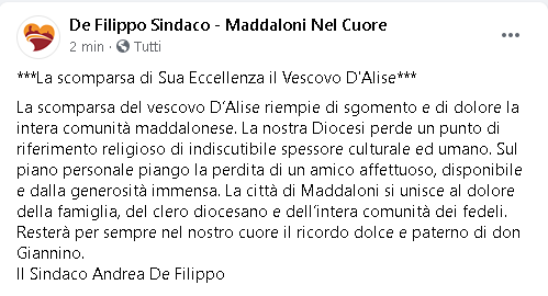 Lo apprendiamo dalla pagina Facebook del Sindaco di Maddaloni, Andrea De Filippo, 'De Filippo Sindaco-Maddaloni nel Cuore'.
