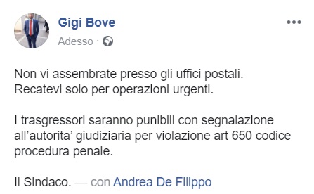 Questo quanto pubblicato dal Vicesindaco di Maddaloni Gigi Bove
