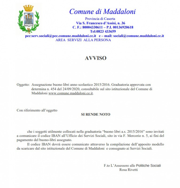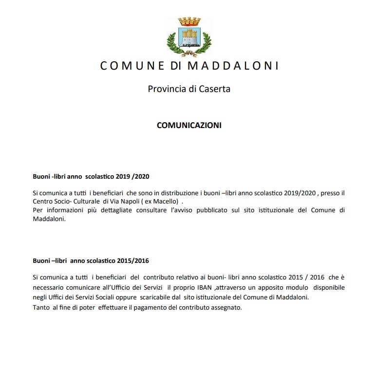 Questo quanto apprendiamo dal sito del Comune di Maddaloni: