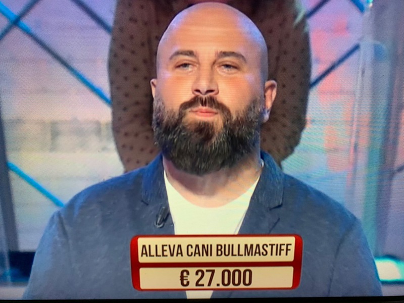 Nell'ultima puntata dei 'Soliti Ignoti', trasmissione in onda su Rai1, è stato presente Giuseppe da Maddaloni. Giuseppe è un allevatore di Bullmastiff che ha partecipato in qualità di ignoto. Congratulazioni a Giuseppe per la sua partecipazione.