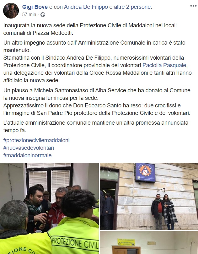 Questo quanto appreso dalla pagina Facebook del Vicesindaco Luigi Bove: