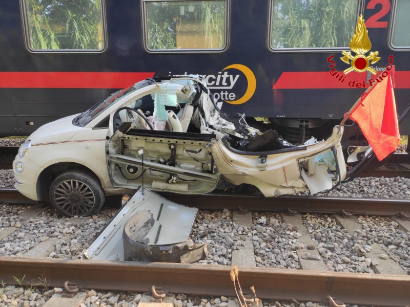 Questo parte del comunicato stampa diffuso dai Vigili del Fuoco: "Dalle ore 04:00 di questa mattina una squadra dei Vigili del Fuoco del Comando provinciale di Caserta proveniente dalla sede centrale è intervenuta presso un passaggio a livello (...) nel comune di Maddaloni a causa di un incidente che si è verificato - si legge nel comunicato - tra un'autovettura rimasta bloccata nel terrapieno adiacente i binari ed un treno tipo Intercity proveniente da Roma e diretto a Napoli via Cancello. Nessuna persona è rimasta coinvolta nell'incidente in quanto le occupanti (...) non riuscendo a sbloccare il veicolo sono riuscite ad allontanarsi prima del sopraggiungere del treno che ha investito in pieno l'automobile. Terminate da poco le operazioni di soccorso - conclude il comunicato - messa in sicurezza e recupero della carcassa dell'auto da parte dei Vigili del Fuoco. La circolazione ferroviaria ancora non è stata ripristinata".