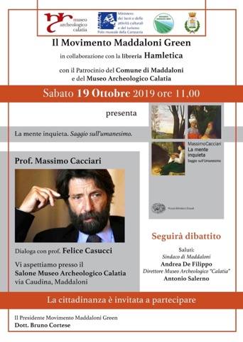 Sabato 19 ottobre l'ex Europarlamentare e Sindaco di Venezia, Massimo Cacciari, sarà a Maddaloni per presentare il libro "La mente inquieta, Saggio sull'umanesimo".