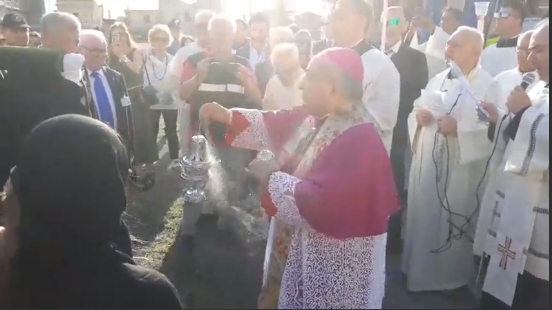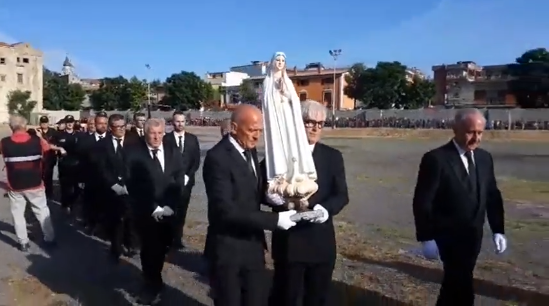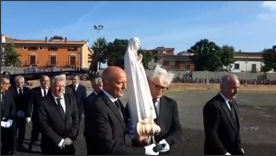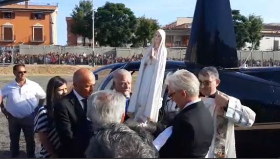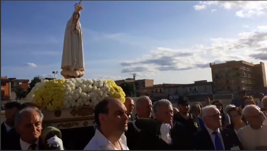 Si sta svolgendo tra le strade di Maddaloni il corteo celebrativo della Madonna di Fatima. Queste intanto le foto del suo arrivo al campo sportivo di Maddaloni, avvenuto grazie ad un elicottero.