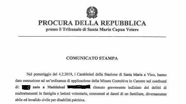 Questo parte del comunicato inviatoci dall'Ufficio della Procura della Repubblica presso il Tribunale di Santa Maria Capua Vetere.