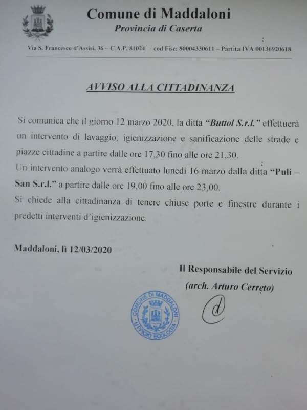 Di seguito, l'avviso del Comune di Maddaloni, giunto in redazione.