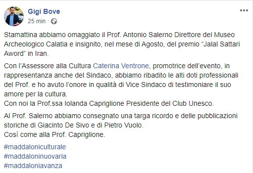 Questo il post pubblicato su Facebook dal vicesindaco di Maddaloni Gigi Bove: