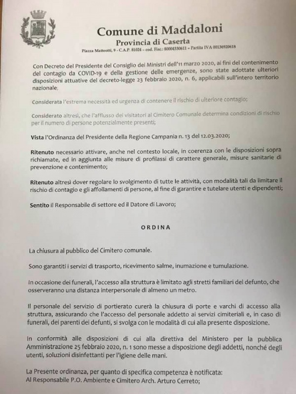 Questo quanto comunicato dal Vicesindaco Gigi Bove